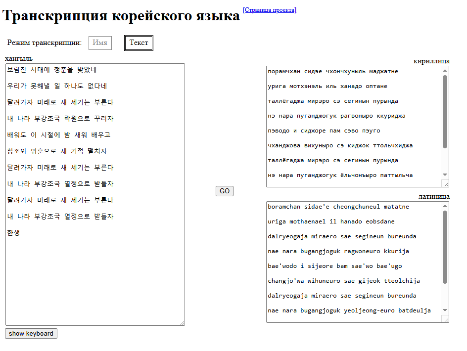 Автотранскрипция с корейского.http://koreantranscription.ru/