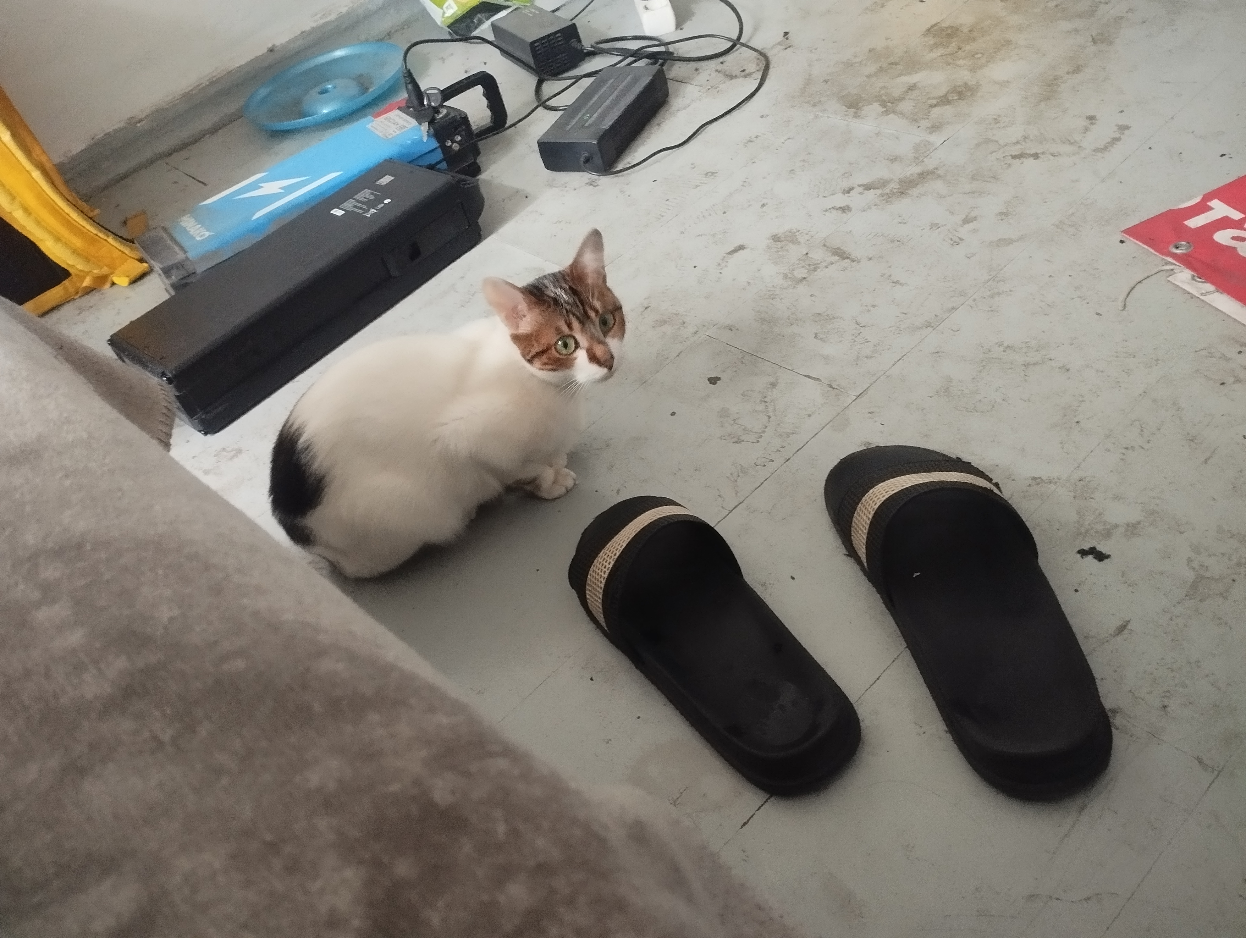 Кошка подобралась неожиданно близко. Обычно она меня дичится. Она меня воспринимает только тогда, когда я на её мявы отвечаю.