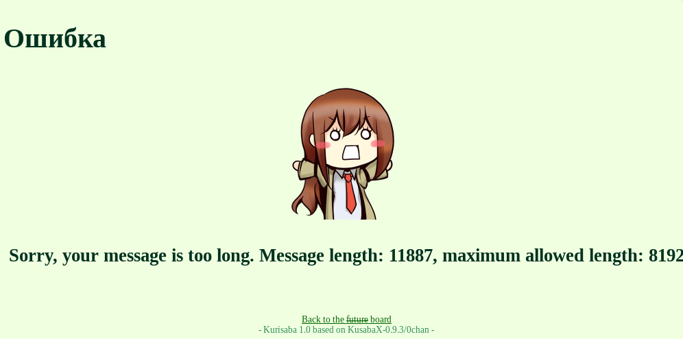 Бля, да как же заебала эта Курицаба в рот ебаная!Карасик Гомура, блять, сисоп ебучий, ты разницу между символами и байтами втыкаешь?Опять, блять, текст на 6к не пролазит сука, потому что, блять, угум.