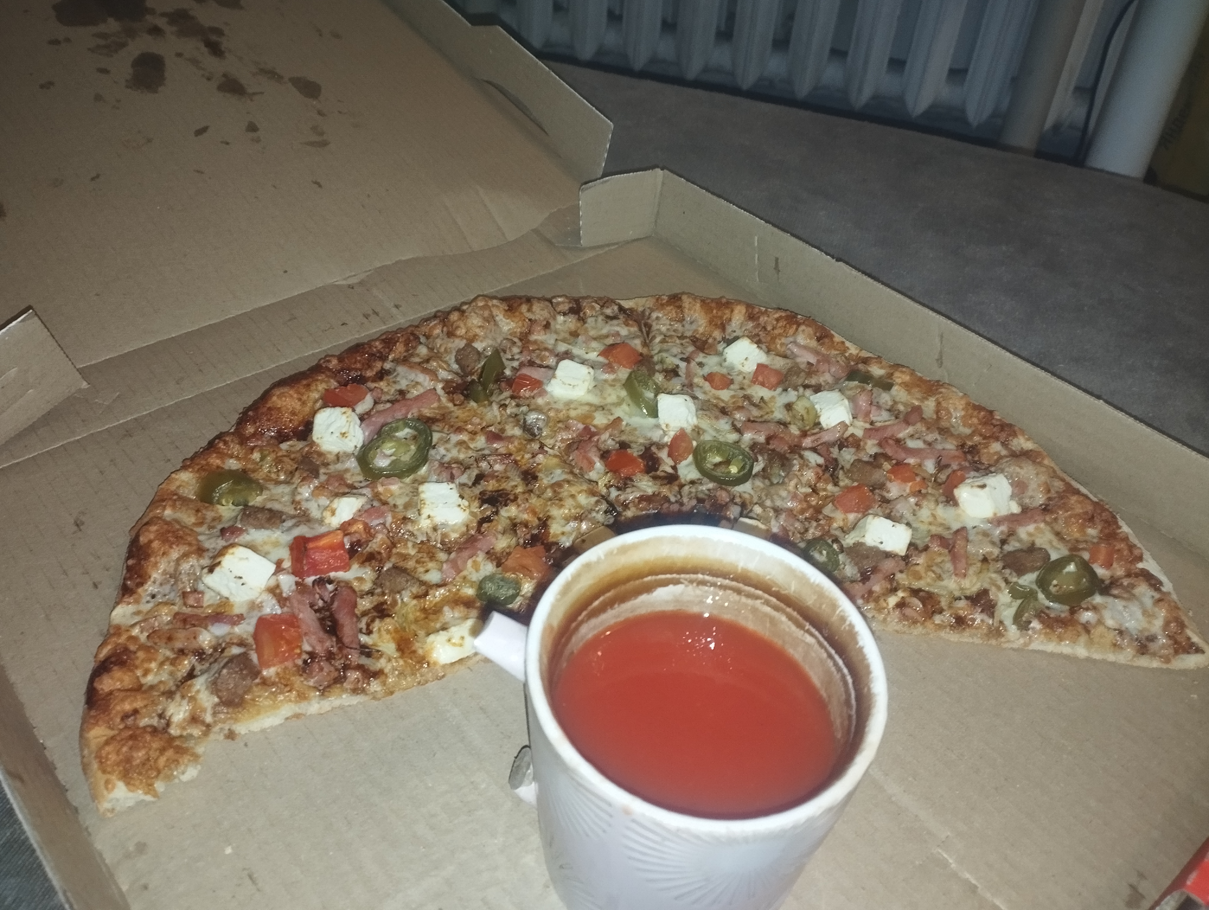 Пица! Гораздо вкуснее и нежнее, чем ОП-пик. Не берите папу джонса. Там не просто так всё дёшево.