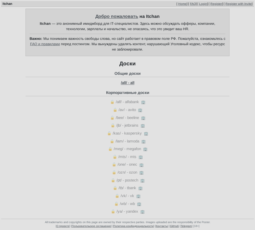 ИТТ обсуждаем анонимные имиджборды. Не забываем о взаимоуважении.Список русскоязычных имиджбордhttps://austrellum.github.io/navigator/Предыдущий: >>6