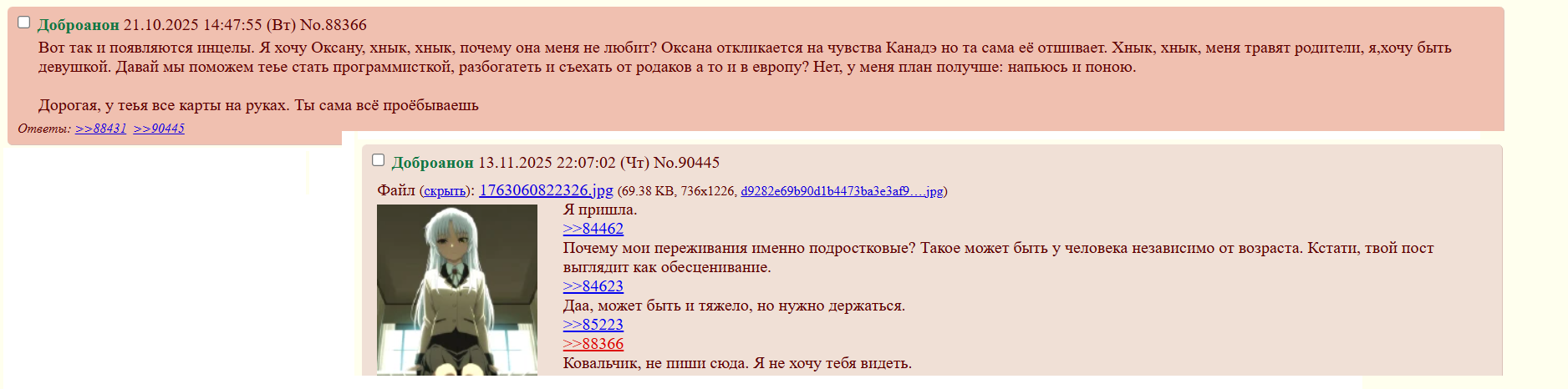 Когда хочется почитать конфу, но брезгливость мешает. Сюда репостятся все посты, которые не попадают в другие треды. В обратную сторону тоже работает.Предыдущий тред: >>8043Конфа: @dobrochan_nl