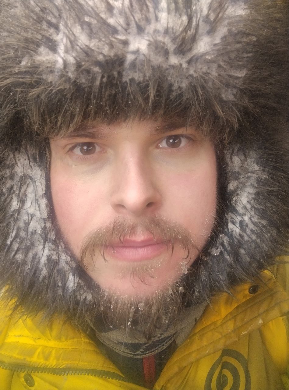 Моя морда, когда в ебло хлещет ледяной снег. Остаётся на много дней, прекрасно контрастирует с синевой под глазами.